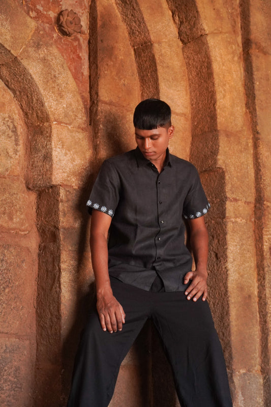 100% Hemp Black Short Sleeve Hemp Shirt -