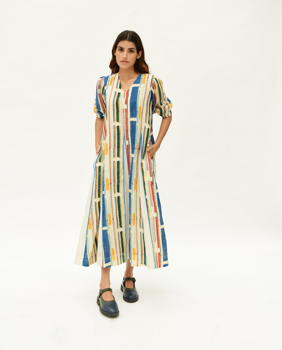 Multicolor Handblock Printed Stripes Shirt