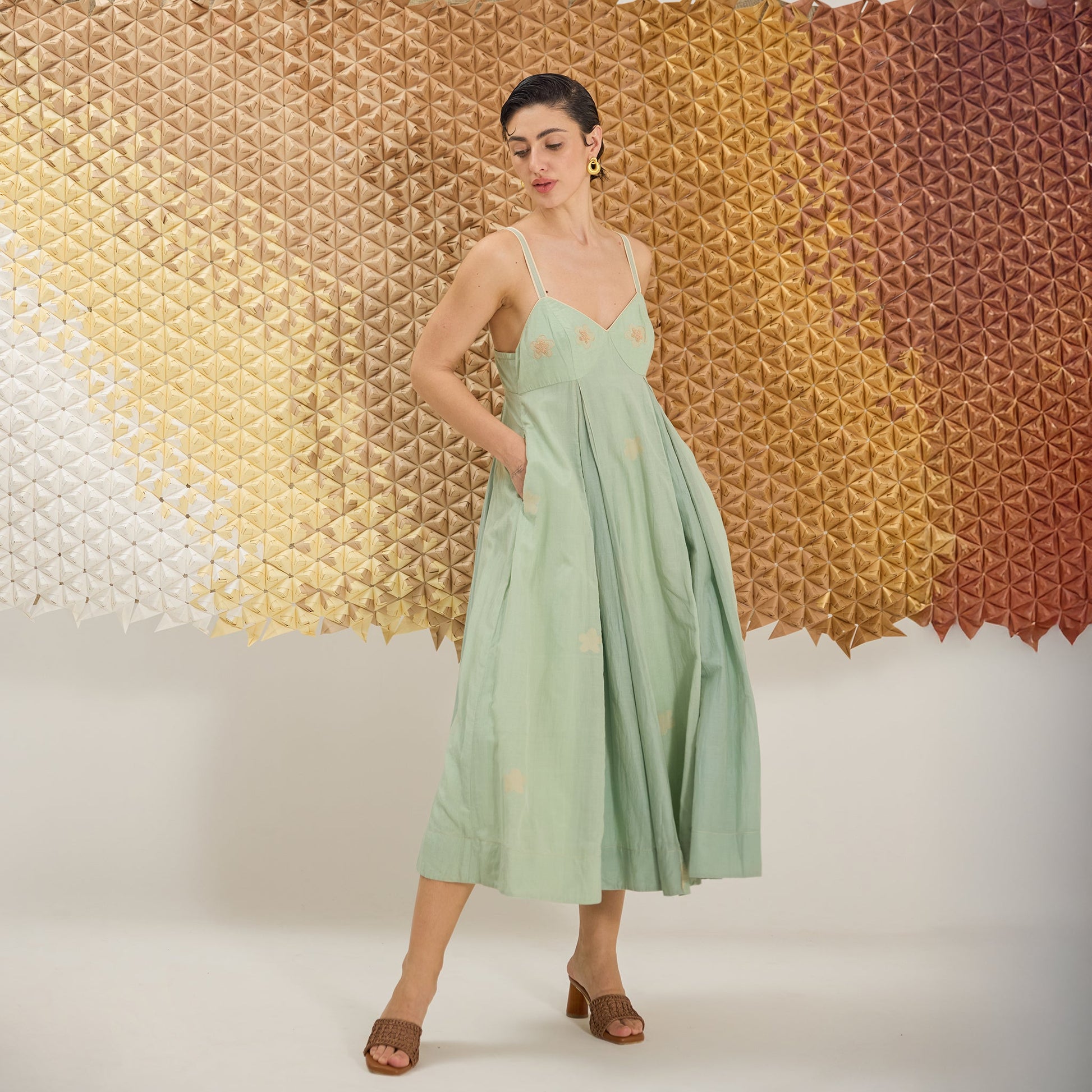 Top Length: 6.5 inches Bottom Length: 50 inches Workmanship: Sujni and French knot on Jamdani weave Article includes an an attached cotton lining