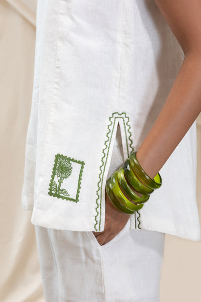 The Stamp Edit features a versatile range of dresses, co-ord sets, and jumpsuits, designed for effortless summer dressing. The pieces are rendered in six refreshing hues and are adorned with Akashi’s signature stamp embroidery in Hindi, along with a sunflower motif, symbolizing growth and warmth.